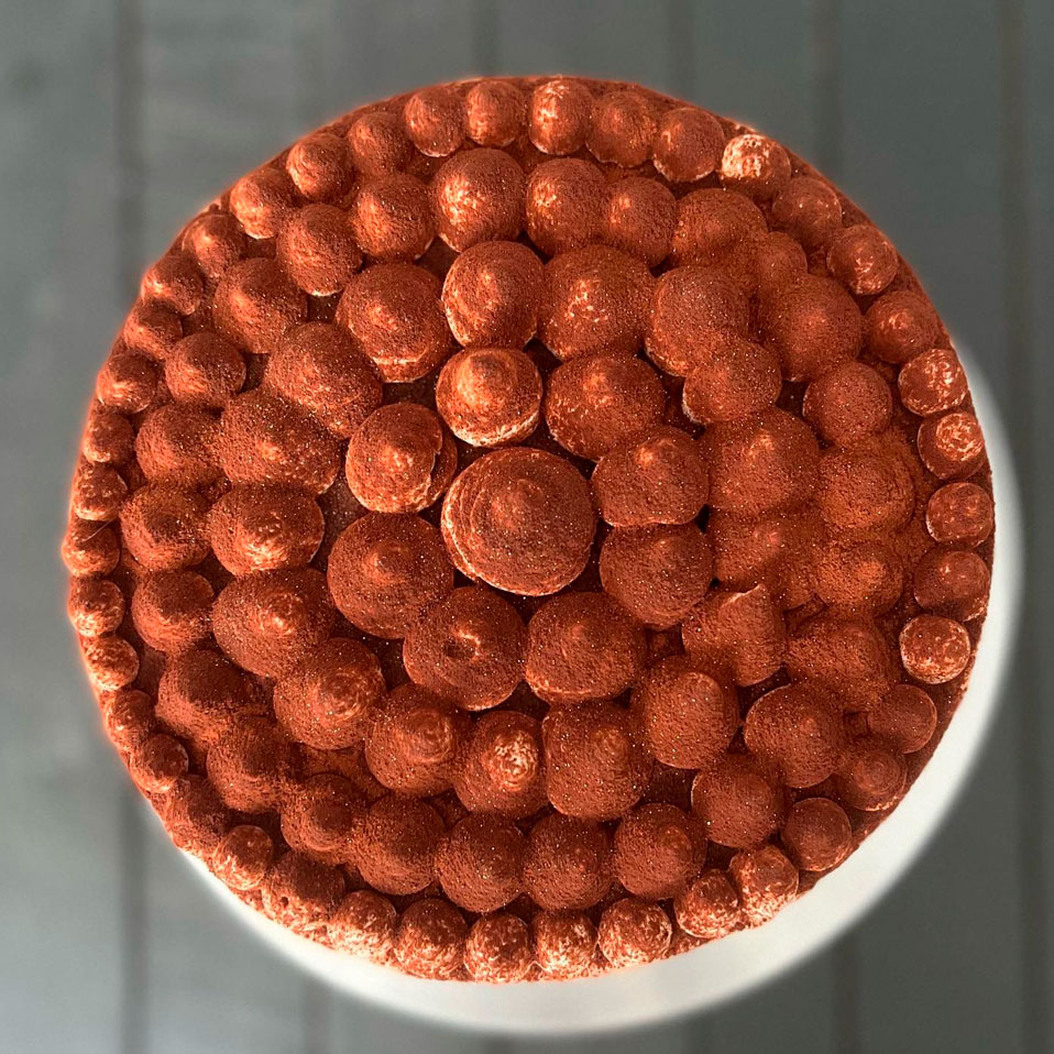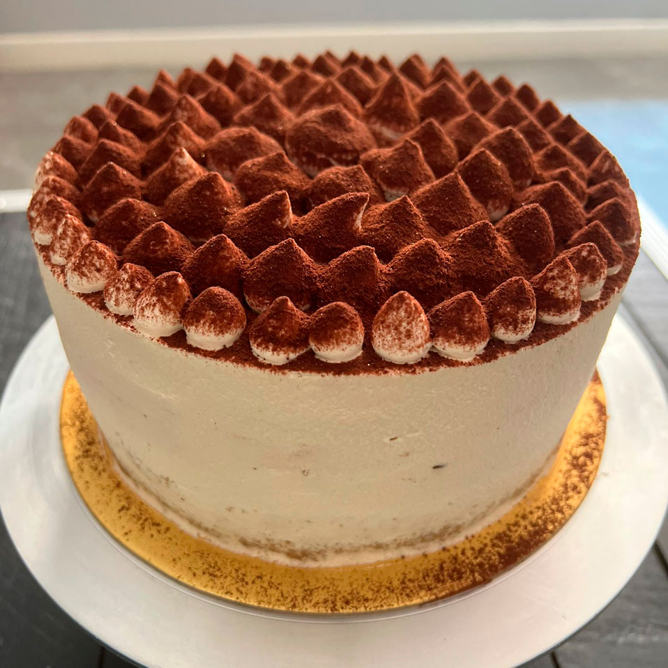 A handsome bugger, bitter sweet coffee génoise sandwiches a mocha Valrhona ganache. This feller comes loaded with dark chocolate crispy balls… lots of balls. Smothered with light Kahlua chantilly cream and dusted with Valrhona chocolate cocoa.