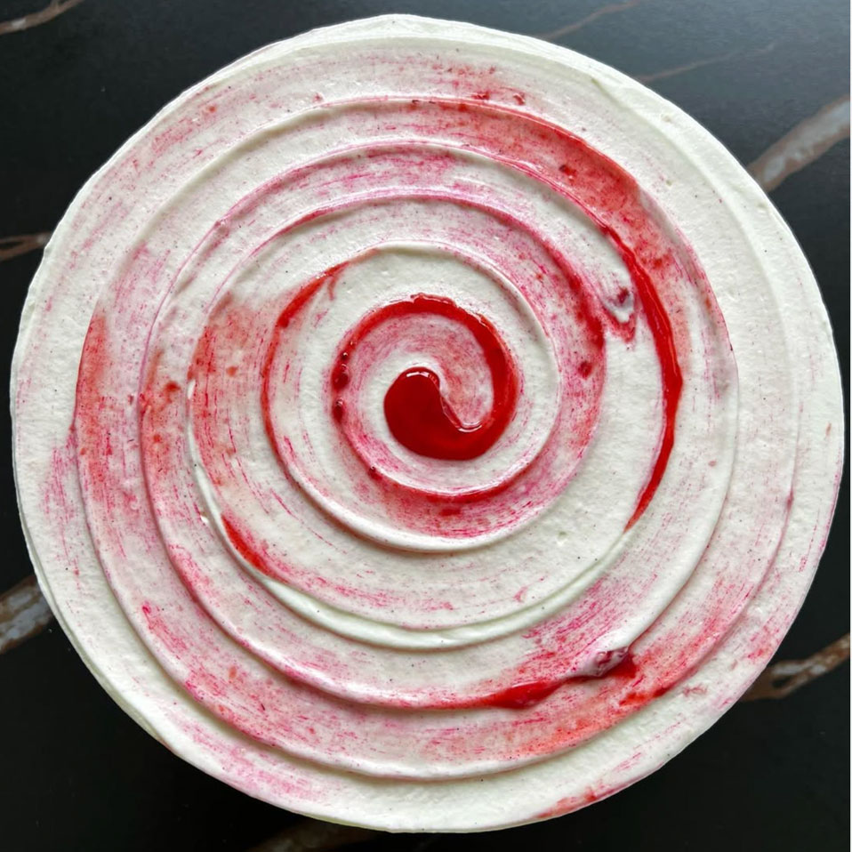The livin’ is easy with this party in your mouth! Zingy Meyer lemon génoise covered in tangy jammy strawberry swirl icing. Time to sit back, unwind and just Fork It.